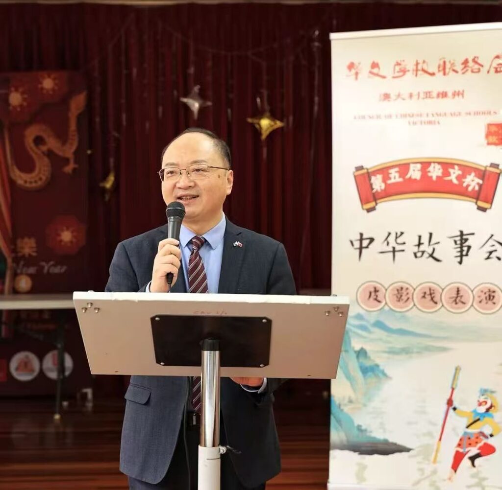 房新文總領事在致辭中表示,中華文化源遠流長、博大精深,中華故事不僅是中華文化的具體表現,也是中華文化傳承的重要載體。總領館始終支持和關心領區華文教育,希望參賽選手及領區華裔青少年繼續深耕中文學習,做中華文化的傳承者和中澳友好的促進者。格雷格議員等嘉賓在致辭中對璀璨的五千年中華文化表示由衷讚歎,鼓勵華裔青少年認真學習中華文化,為豐富澳大利亞多元文化作出積極貢獻。華文杯」由維州華文學校聯絡會主辦,迄今已連續成功舉辦五屆。本屆比賽分為初賽(選拔賽)和決賽兩個部分,歷時4個月,共吸引近1000名華裔青少年報名參加。決賽部分設置了成語接龍大賽、文化集市大闖關、皮影戲創意表演等妙趣橫生的環節,分不同年級組共決出金獎、銀獎各1組和銅獎各2組,10所學校獲得優秀組織獎。