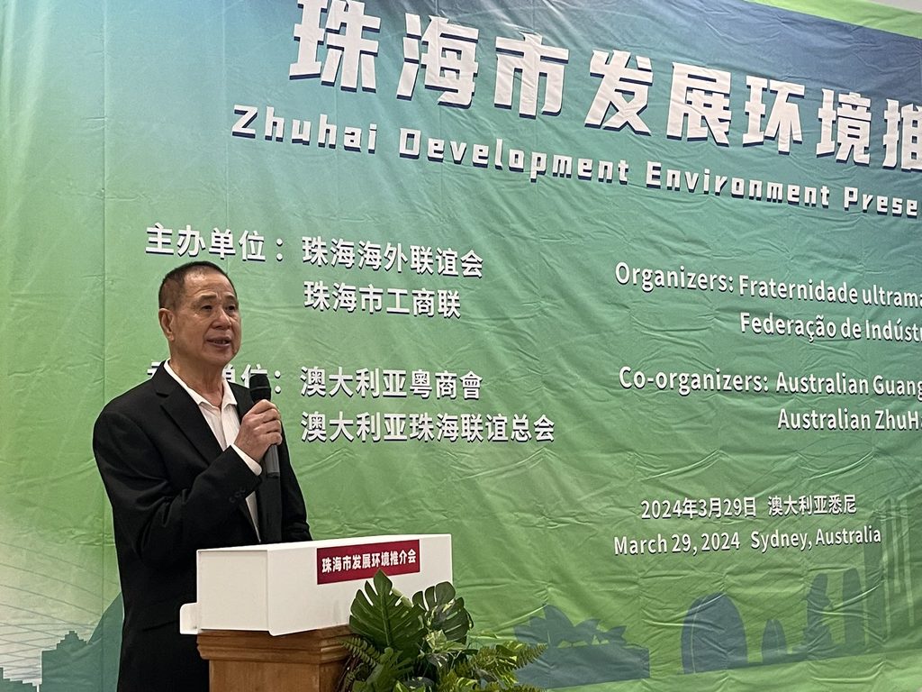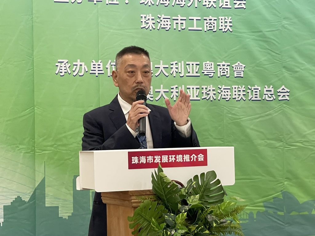 他表示珠海市是個集旅遊、投資利好的城市,工商聯有8000多家會員企業,是珠海近 40萬戶民營經濟單位的優秀代表 ,涵蓋食品大健康、生物技術和醫藥醫美信息化和智慧城市、工程建設等諸多領域,此行澳大利亞是一次雙向奔赴,珠海企業看好這裡的市場和投資環境,歡迎澳洲廣大華人華僑多到珠海觀光,並通過你們帶動澳大利亞各界商會代表來珠海考。