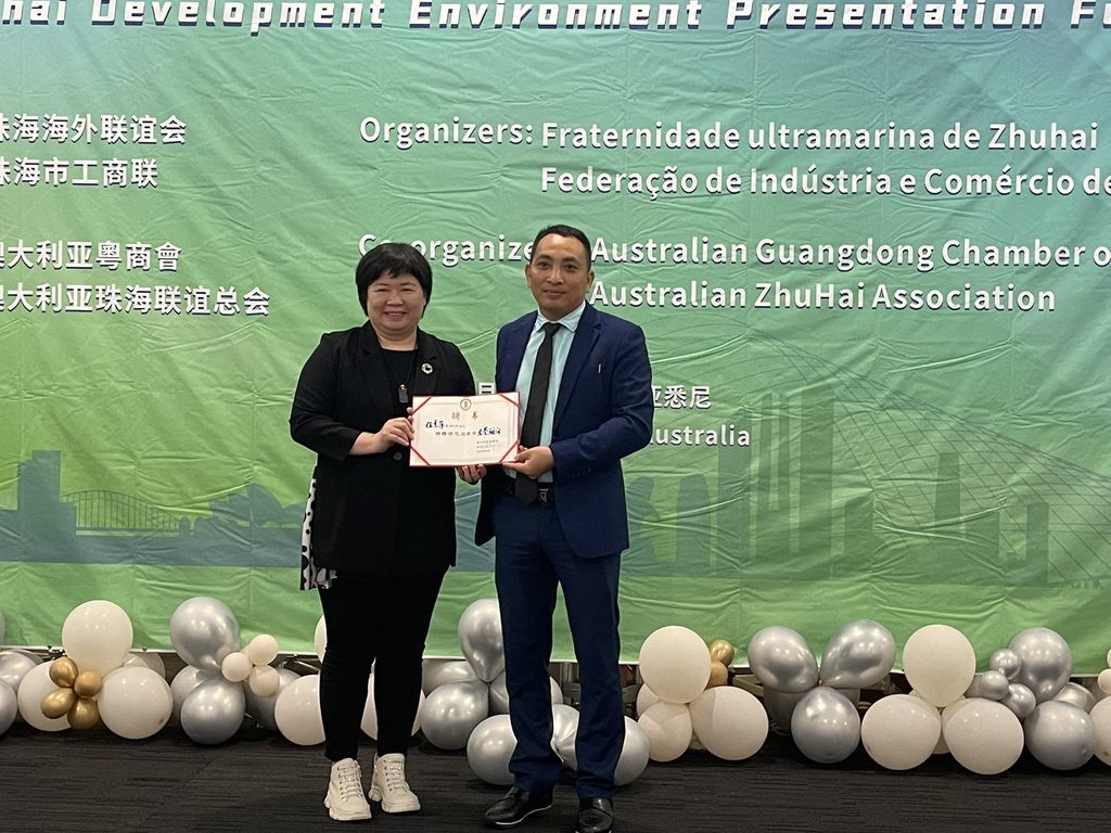 澳大利亞粵商會頒發聘任書予珠海工商聯代表。