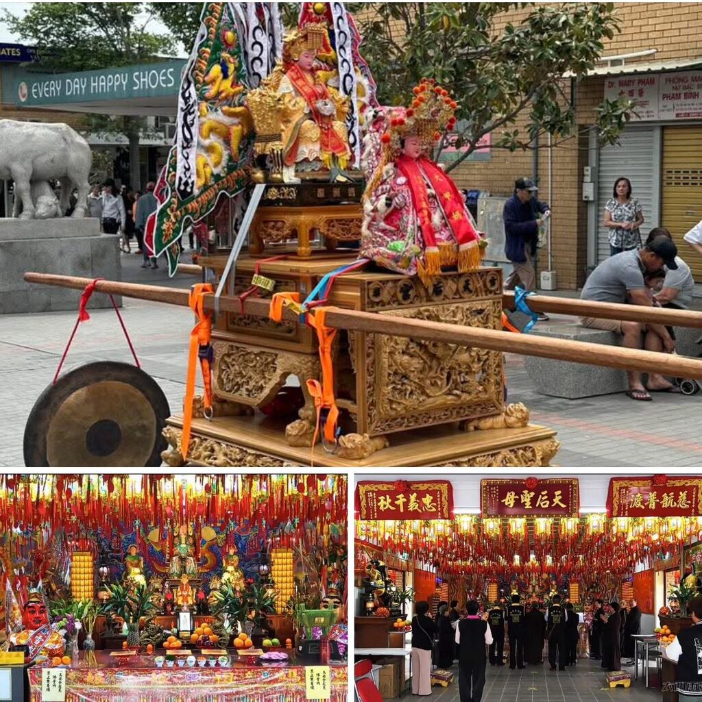 雪梨西區卡市Cabramatta人口以越南籍華人為主體,1975年越南戰爭結束,由於政治經濟動盪不安,許多越南華人出生入死逃亡,乘坐條件惡劣的小船,冒險穿越南海;在生死未卜的關頭,海上難民們祈求海上平安,祈禱海事神明媽祖娘娘的保佑,希望能平安抵達新的國家。澳洲政府在1970年代末和1980年代接收了大量來自越南的難民,他們成為澳洲多元文化社會的根基,他們的到來也引起了澳洲社會的廣泛關注和討論。抵達澳洲的越南難民面臨著適應新環境、學習新語言和尋找工作的挑戰,許多難民在澳洲政府的支持下,開始了新生活。 感念媽祖娘娘保佑,於1990年代卡市越籍華人共同發起雪棃天后宮籌建,向多方集資善款興建以還心願;卡市天后宮於1994年由雪棃天后宮籌建代表一行人到台灣大甲鎮瀾宮恭請媽祖分靈,又於2018年回到媽祖娘娘林默故鄉福建湄洲島恭請媽祖本尊分靈。「分靈」是媽祖信仰的傳播方式,透過分靈儀式,將原本在湄洲祖廟的媽祖神像分靈出去,讓各地信徒得以供奉及祭祀。被尊為「海上和平女神」的媽祖,近年來在海外傳播持續升溫。 2009年,媽祖信俗被列為世界人類非物質文化遺產。根據不完全統計,目前,全球40多個國家地區有上萬座媽祖分靈廟,信眾達3億多人。媽祖各地巡安活動是媽祖文化的弘揚,體現了華裔的文化和傳統。