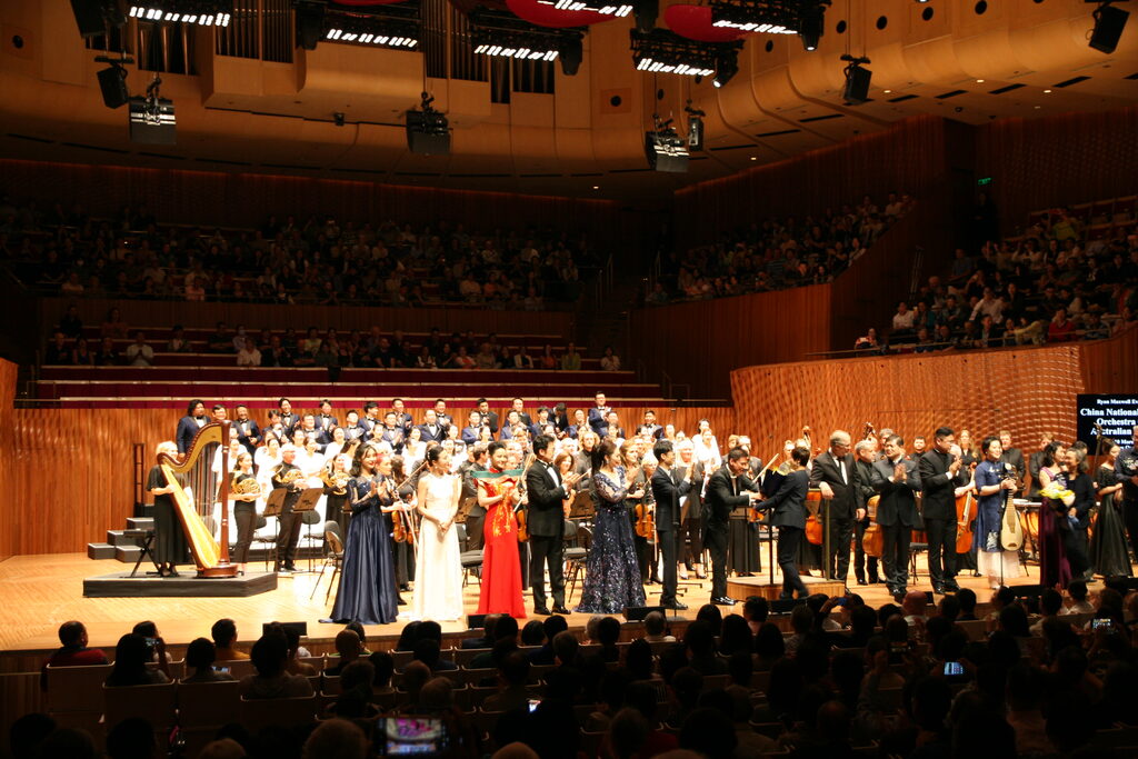 當晚,悉尼歌劇院座無虛席,約70位藝術家演繹了多首中外經典歌曲。演出上半場以《烏蘇裡船歌》《彩雲追月》等中國經典曲目開場,並巧妙融合世界經典合唱作品《布蘭詩歌》,全面展示中西方音樂藝術的獨特魅力。下半場,中國交響樂團合唱團與澳大利亞管絃樂團攜手,共演經典《黃河大合唱》。此次演出旨在紀念「抗日戰爭暨世界反法西斯戰爭勝利80週年」。除《黃河大合唱》外,合唱團還演繹了多首中國少數民族歌曲及西方經典作品,悉尼觀眾不僅欣賞到了中國豐富多元的音樂演出,也領略了中國文化的寬廣與自信,展現了中國文化兼收並蓄、融匯世界的魅力。來自悉尼政界、商界、文化界、教育界及僑界的逾千名觀眾欣賞了這場精彩紛呈的演出。澳大利亞澳中人民友好交流協會會長田飛和澳大利亞香港聯誼會會長彭小仕在觀看演出後對記者表示:「此次音樂會跨越時空,奏響了中華文化自信的旋律。這場巡演加深了澳中兩國人民對彼此文化的瞭解和欣賞,促進民心相通,為增進澳中友誼搭建一座藝術的橋樑。」分享 / Share :
