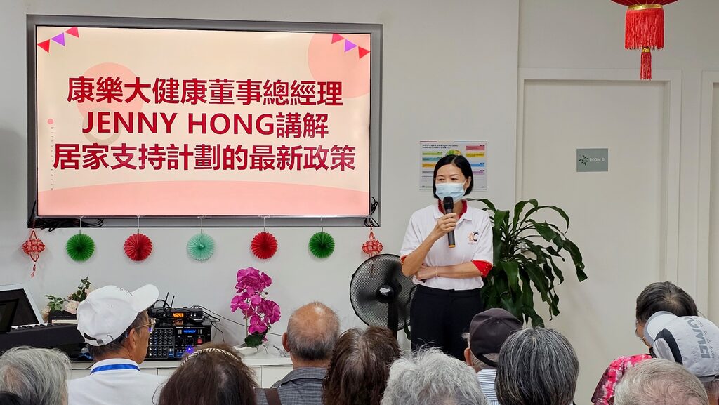 活動開始,先由康樂大健康長者唱歌班的學員合唱《春風10萬里》,康樂大健康日間中心每天都有舉辦興趣班,吸引了不少長者參加,其中由莫名老師執教的長者唱歌班,受到不少長者們的歡迎,每次有機會演出,長者唱歌班的同學們都很認真努力地唱好每一首歌,受到許多的掌聲支持。康樂大健康負責人JENNY上台講解了居家支援計劃(居家養老)的政府最新政策,因為今年七月開始,政府對居家支持計劃進行了許多的改革,因此,康樂大健康希望不停地將正確的訊息傳達給眾多的長者。Service NSW 政府訊息傳達官員Uma,親自帶同普通話翻譯到現場為長者們講解了有關政府養老金(age pension)的政策,希望令一些未申請或準備申請的長者們能在申請前了解及做好準備,而成功已經申請政府養老金的長者,也可以從中了解一些政府的政策,例如:出國旅遊的養老金政策是怎樣如何?避免給政府取消或暫停養老金等等,現場氣氛也很熱烈,不少長者都有提出許多問題,也一一耐心進行了解答,令許多長者都得到了正確及有用的資訊。三月長者慶祝生日會,共有四名壽星到場接受全場的生日祝賀,包括唱生日歌,切下康樂大健康特別為他們準備的蛋糕等等,已經92歲的林順中先生更分享了高齡的心得,獲得了全場許多的掌聲。康樂大健康藝術團也為長者們表演了一系列精彩的演出,包括:木希女子组合小组唱:《向云端》、《这世界那么多人》、 Sophia和禅表演舞蹈《这世界赠予我的》、 赵立华和朱兴华 男女声合唱《春风十万里》、Liliya和主任组织游戏《击鼓传花》、Sophia 、Joyce和禅表演舞蹈《心恋》、土妹、汤圆成组织带操练習等。活動結束前舉行了幸運抽獎,而每位到場的長者也得到了康樂大健康送出的禮物,高興而回。