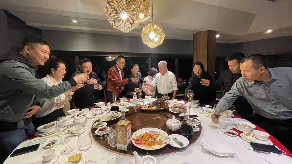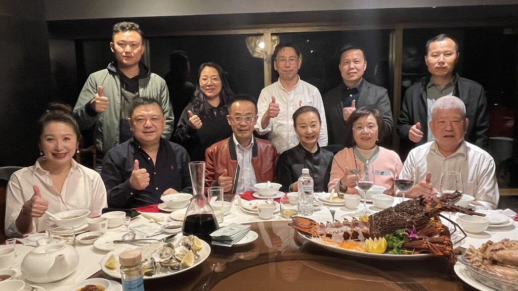 一行人於週四晚更受到位於悉尼North Ryde RSL Club 內之棠閣酒家款待和設宴歡迎,席間還與該酒家一眾董事局成員劉景堂、林小蔚、糜征孚、Chris Chan等𣈱聚交流。劉永忠會長表示,澳洲地區資源豐富,材料質量新鮮安全,所以烹調出來的菜式都可達到事半功倍的效果,絕對是食家們的信心保證和口福。他隨後還邀請棠閣董事局成員及澳洲的朋友前往深圳再作交流。