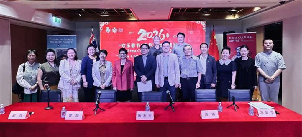 【本報悉尼訊】悉尼中國文化中心、中國駐悉尼旅遊辦事處主辦的2026馬年「歡樂春節」系列活動新聞發布會於周四(15日)在悉尼中國文化中心舉行。中國駐悉尼總領事館新任文化參贊樂利文、悉尼中國文化中心副主任袁偉、中國駐悉尼旅遊辦事處趙鳳、澳大利亞中華經貿文化交流促進會執行主席曾毅博士、澳豐文化集團董事長馮敦平博士等嘉賓和中澳21家媒體50余人齊聚一堂,共同見證2026年「歡樂春節」系列活動正式啓動。