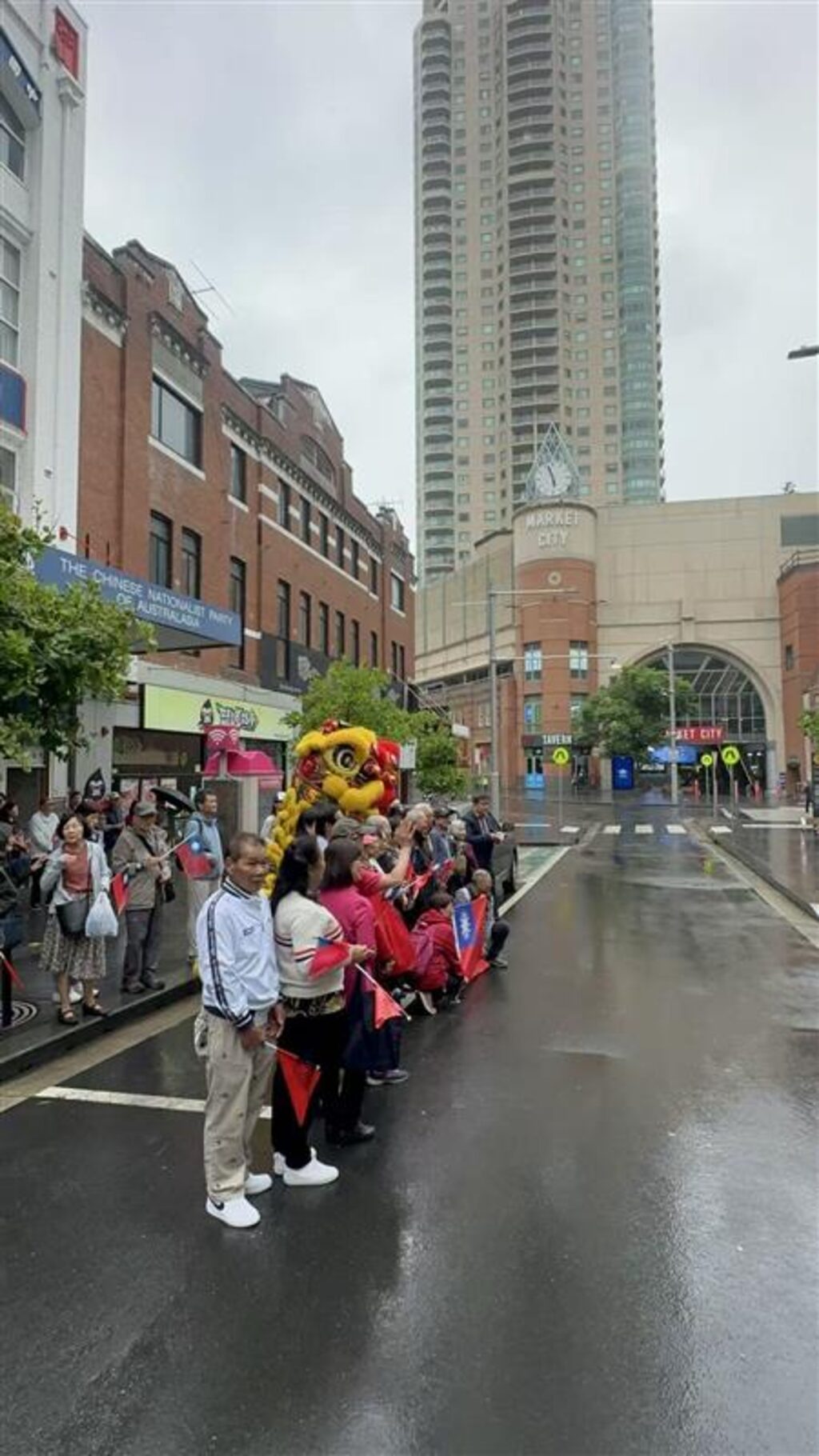 典禮甫開始先由巫天鐸值月常委與陳盛福評議委員齊為邀請來的得勝堂醒獅團兩頭瑞獅進行點睛儀式,喻意新年新氣象新的開始。隨後在場全體出席者肅立下,澳洲國旗、青天白日滿地紅旗及國民黨黨旗在大樓頂部緩緩升起。
