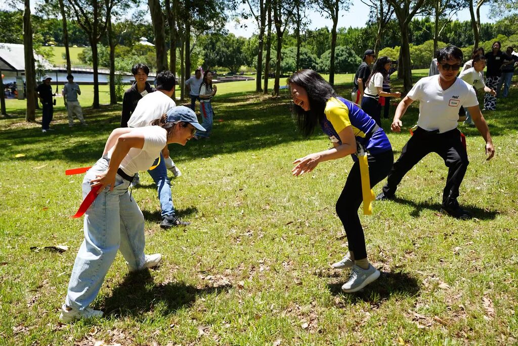 是次活動主要組織人由會長張靖楠及青年會員曾健紅,莫靜誼,張麗雲等協助,各人齊心協力,幫忙佈置場地和準備食物,當中參與幹活的四邑鄉親包括Lily姐,芳姐,Ivy, Winson, 鍾先生和鍾太太及劉先生等。負責活動策劃的是年輕人趙值和小胡。共有50多個人參加,年輕人大概40個,包括Parramatta 巴拉瑪打市市議員 吳遠華 Michale NG,有四邑的、廣州的,和祖籍其他地方的年輕人。因為活動說辦就辦,年輕人行動也快,經費審批比較費時。這次活動是張靖楠會長和Jane Mo所贊助。活動過程和節目生動有趣,項目包括有「簽到」自畫像,不畫不知道自己畫出來的是什麼樣,大家都看著自己畫的自畫像哈哈大笑,歡樂融洽。會長張靖楠在致詞時表示,看到那麼多年輕人出席參加非常開心,感覺同鄉會充滿朝氣和活力,在傳承方面大有希望。同是四邑鄉親的巴拉瑪打市市識員吳遠華在致詞時指出,年輕人需要什麼支持可以向他或Parramatta council 提出,他及同事們一定會樂意提供幫助。隨後在午餐期間,大家吃著BBQ 燒烤食品和聊天,同時並開始同哥同樂的環節,玩遊戲拿積分,最有趣的是腰旗拔旗,紅旗和黃旗兩組對抗,一組9人,在一個劃定的範圍內,互相扯對手身上的旗,誰的旗被扯掉就出局,留到最後的那組勝出。非常激烈,大家玩的過程放鬆開懷,不亦樂乎。大會宣佈,在玩遊戲拿到的積分可以用來拍賣,主辦方準備了很多小禮品來給大家拍賣,禮品是蓋住看不見的,是什麼值多少分全看主持口述,有人花幾百分買了一包旺旺雪餅,非常搞笑,非常激烈但非常開心。最後大家都拍到自己想要的禮品,高興的結束活動。當天很多參加的青年鄉親對是次活動發表了感想,表示活動動是把年輕人拉聚在一起的最有用的方式之一,因此大家需要思考一下怎麼把四邑的活動項目做起來,做得更多元化,更精彩。