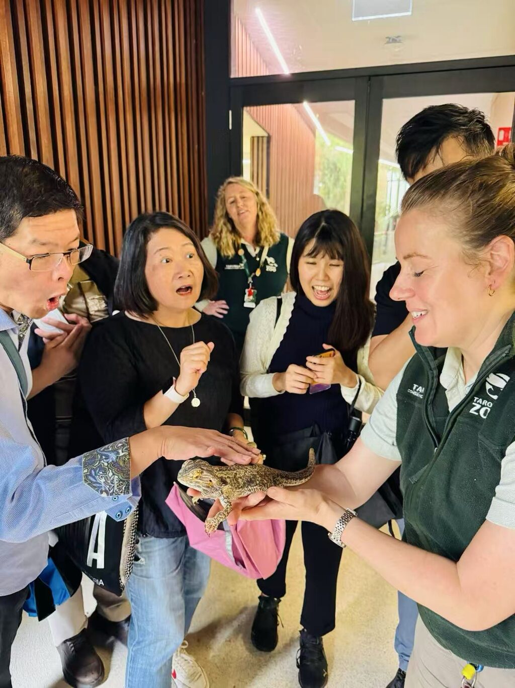 該園區為超過350物種、5,000餘隻動物提供開闊舒適、乾淨衛生的居住與展示環境,除澳洲本土物種外,亦與印尼、墨西哥等地動物園及台北市立動物園建立合作與交流關係,使入園民眾有認識其他國家特有物種的機會,寓教於樂。該園另設有旅館、餐廳、兒童遊樂設施等家庭休閒場域,獨具特色的科學教育中心除生物學研究外,亦致力與各級學校進行教育合作,包含雪梨大學的研究學位。吳正偉處長感謝園方的接待,肯定該園在生態保育、社區教育、維持物種多樣性等方面的卓越貢獻,並代表中華民國政府贊助小額經費表達台灣對維護澳洲生態的支持,拋磚引玉,鼓勵各界更多對澳洲動植物保育的關懷及協助。園方另派員陪同吳處長一行參觀該園區澳洲特有動物區、科學教育中心及相關設施,讓辦事處同仁吸收許多動保新知。吳正偉處長是繼2024年11月捐助新州北部無尾熊復育中心之後,第二度代表台灣政府捐款贊助澳洲生態保育工作。永續發展向為台灣所重視的核心價值之一,為追求台灣積極邁向永續發展,並回應聯合國2030年永續發展目標(Sustainable Development Goals, SDGs)的「保育陸域生態」核心目標,台灣政府及民眾願意為全球動物保育工作盡一份心力,也期待未來台澳能持續在保育及環保公益等議題上加強合作,共建友善環境。