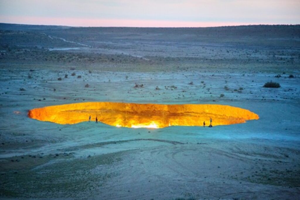 著名景點:地獄之門 Darvaza Gas Crater暫別天堂似的首都,我們便朝着卡拉庫姆沙漠進發,直奔「地獄之門」去也。達爾瓦扎瓦斯坑位於阿什哈巴德以北約260公里處。從市區開車去那裡要開很長很熱的一段路,雖然有些地方崎嶇不平,但是為了一睹這奇跡,再辛苦也是值得的。大家分乘四部四驅車,大清早從酒店出發,離開城市後,道路也開始變得凹凸不平,我們坐在車子上左搖右晃,窗外黃沙莽莽,路上塵土飛揚,還不時飄起碎礫……沿途盡是無垠的荒漠、耐旱的矮樹叢,還不時看到野放覓食的單峯駱駝,有的踽踽獨行,有的三五成群……也有帶着小駱駝,一起上路的駱駝家族……遙想昔日絲路上,穿越沙漠的駱駝商隊,熙來攘往的情景早已灰飛煙滅。沙漠的公路日久失修,車子走在坑坑窪窪的路上,為了閃躲對面的來車,我們也像坐過山車似的,上下左右甩動,猛然碰到一個大坑洞,頭也就狠狠地向前撞……跟平坦寬敞的首都公路相比,這條沙漠之路,就像行舟於怒海,波濤洶湧起伏,載浮載沉,乘客早就被甩得頭昏目眩了。一路顛簸,大家都叫苦不迭,捱過五、六個小時的車程,終於走進沙漠中部的達瓦札村。據說,達瓦札村約有居民350人,絕大部分是塔克族(Teke)的土庫曼人,過着半耕種半遊牧的生活。話說在1971年,前蘇聯工作組在達瓦札村附近的沙漠地區勘測天然氣資源,正進行鑽探時,發生意外,地面突然出現局部坍塌,形成一個直徑約60米、深30米的巨型深坑,所有鑽井設備、儀器全部掉落其中,天然氣從地底冒出來,散發出刺鼻的氣味。幸而全體隊員迅速撤離,沒有造成人命傷亡。如何處理這種意外,早有先例可循,為了防止有害氣體外洩,地質學家決定將坑中氣體點燃,讓有害氣體自動燃燒殆盡。最初估計,大火在幾個星期內就可熄滅,有誰料到,坑中蘊藏的天然氣似乎無窮無盡,火勢竟持續了50餘年,而且還會繼續燃燒下去,未知何時才能熄滅。直到今時今日,洞口的火焰從未間斷過,依然旺盛如初,當地人稱之為「地獄之門」。壯觀的景象,令人驚歎不已,到訪的遊客絡繹不絕。然而,燃燒帶起的熱力,令周邊地區寸草不生,迫使附近的村落早已遷徙到別處去。正值下午,赤日炎炎似火燒,我們下車後,逐步走近這個「火焰洞」,一如傳說,巨坑中的火苗仍在不住的燃燒,坑底滿布黄泥、石塊、砂礫,紅彤彤的火光,讓人不敢逼視……我繞着地獄之門,緩緩地走了一圈,坑中橘紅的焰火往上躥,閃爍不定,燒得讓人的臉發燙,陣陣熱風吹來,連呼吸也感到有點吃力。魅火長生不滅,恍如舞動的精靈,有自己的語言,也有自己的喜怒哀樂,既神祕卻又令人着迷……在「地獄之門」周遭蹓躂了一陣子,雖然熱不可當,大家卻捨不得離開……附近有座小山丘,我們跑到山上去,從高處向下眺望,匍匐於遠方的坑洞,就好像一個靜止的火山口……從山丘走下來,踩着細軟的流沙,步行至到附近的蒙古包營地,躲在帳篷外的陰涼處吃東西,午餐簡單而豐富,是司機為我們預備的,有烤雞腿、牛肉串、甘筍、茄子、馬鈴薯,還有香蕉、蘋果和解渴的熱茶。鑲嵌在沙漠中的火焰奇觀,引來不少旅客,大多數人都會租住蒙古包,留宿一宵。白天 vs 夜晚的震撼· 白天:火坑周圍能清楚看到坑壁與噴湧的天然氣火焰,壯觀但略顯荒涼。· 夜晚:隨著天色轉暗,火焰映照整片沙漠,宛如地底深處的烈焰在呼吸。許多旅人選擇在此露營過夜,只為親眼目睹「地獄之門」在星空下燃燒的景象。趁現在去的理由,近年來,土庫曼政府曾多次表態考慮關閉或熄滅地獄之門,以避免天然氣浪費與環境影響。如果未來真的關閉,這個舉世無雙的景象可能只存在於照片與記憶中。因此,對許多旅人而言,現在正是造訪地獄之門的最佳時機。汗血寶馬(Akhal-Teke)— 土庫曼的國寶談到土庫曼,絕不能錯過傳奇的 汗血寶馬(Akhal-Teke)。這一品種被譽為「世界上最古老、最稀有的馬」,同時也是土庫曼的驕傲與象徵。汗血馬,又名汗血寶馬、大宛馬、大宛良馬、天馬、阿哈爾捷金馬,中亞出產的一種良駒,山地馬種、抗疲勞,蹄堅硬,甚至可以「日行千里」。目前汗血寶馬在中國已經絕跡,在土庫曼境內也只有3000匹左右,屬於該國國寶,並被繪製在土庫曼國徽中央。史載大宛國人把五色母馬放在山下,野馬與母馬交配,生下汗血寶馬。汗血馬以出汗血而聞名,20世紀的研究表明,這種棕紅色的汗血可能是由寄生蟲多乳嘴絲狀蟲所造成,亦有專家持反對意見。土庫曼的阿卡爾特克馬,產於土庫曼科佩特山脈和卡拉庫姆沙漠間的阿卡爾綠洲,是經過三千多年培育而成的世界上最古老的馬種之一,德、俄、英等國的名馬大都有阿卡爾特克馬的血統。張騫出使西域時,在大宛國發現這種汗出如血的寶馬。漢武帝為了寶馬遣使帶黃金二十萬兩及一匹黃金鑄成的金馬去貳師城求換,大宛王拒絕,「漢使怒,妄言,樵金馬而去」,大宛王見漢使無禮,命東部邊境郁成城(烏茲根城)的鎮守大將郁成王攔住漢使,殺死全部使團。武帝大怒,兩次派兵征伐大宛。汗血寶馬以修長的四肢、優雅的體態著稱。牠們的毛色在陽光下會閃爍出金屬般的光澤,彷彿覆蓋著一層薄薄的金箔,因此常被稱為「天馬」。此外,汗血寶馬耐力極佳,能在嚴酷的沙漠環境中長途奔馳,展現了遊牧民族馴養與生存的智慧。在土庫曼,汗血寶馬被視為國寶級動物,甚至出現在國徽與紙鈔上。每年四月,當地會舉辦「汗血寶馬節」,透過賽馬、展示與