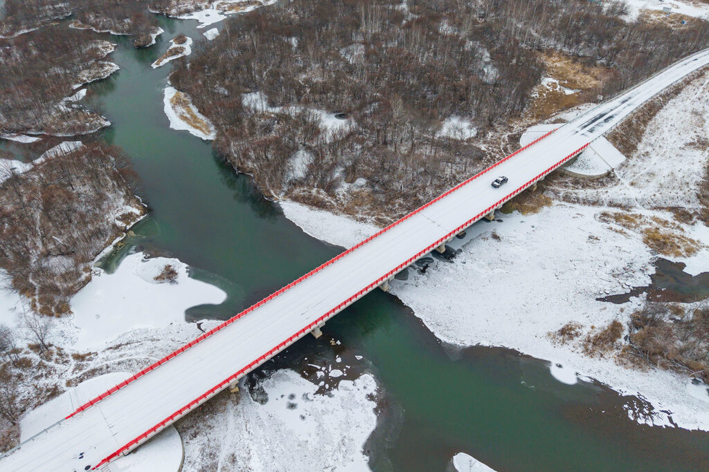 在遼寧省丹東市與吉林省通化市交界處拍攝的G331吉林段起點渾江口大橋。新華社