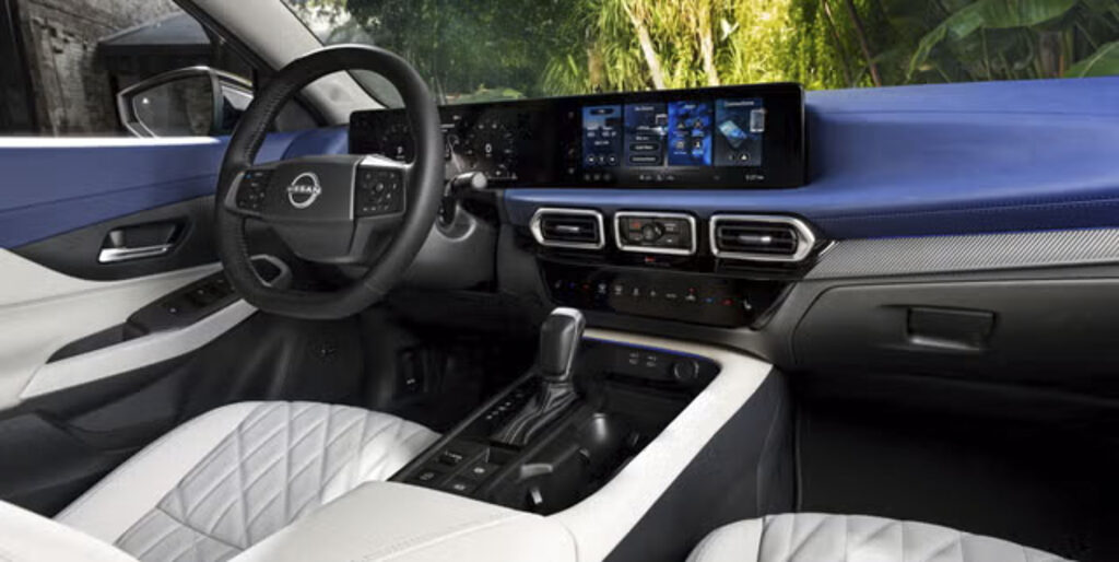 Sentra採用全新「Daring, Vitalizing, Resonating」設計理念,車頭搭載進化版V-Motion水箱護罩,與細長LED頭燈(SL標配投影式)無縫銜接,風阻係數約0.29。解鎖時,頭燈、方向燈與遠近光燈演繹迎賓光影,增添科技感。車側以銳利肩線與外擴輪拱,搭配16英寸鋼圈(S級)或18英寸鋁圈(SR/SL),強化動態輪廓。車尾貫穿式LED尾燈與弧形保桿提升穩定感。車色包括Imperial Bronze、Scarlet Ember與Super Black雙色(SR專屬)。車身加長16毫米(4656毫米),軸距2712毫米,視覺更低趴。座艙設計著重於開闊與和諧感,並藉由大量軟質觸感材質提升質感。內裝以「Monolith Display」為核心,SV以上標配雙12.3英寸螢幕(數位儀錶+中控,2560×1600),S級配7英寸儀錶。螢幕亮度提升200%,支援無線Apple CarPlay、Android Auto與NissanConnect,操作流暢。觸控式空調面板(SL標配)簡化中控,保留實體音量旋鈕與方向盤快捷鍵。SL車型搭載Bose 8揚聲器音響(400W)、64色氛圍燈與Qi無線充電。TailorFit軟質座椅(SL專屬)提升觸感,搭配加熱方向盤/座椅與電動天窗。軸距2712毫米提供寬敞前排,後排配雙USB-C與中央出風口。行李廂容量405升(VDA),可容兩個中型行李箱,60:40放倒後擴至約900升,搭配低平底板與掛鉤,方便裝卸購物袋。車內置物包括門板杯架與中央扶手箱,標配雙區空調(SL配三區)。車重1350公斤,轉向半徑5.4米,拖曳能力1000公斤。SL車款搭載2.0L MR20DD四缸引擎(149匹馬力,200 Nm,4400 rpm),搭配Xtronic CVT,0-100 km/h約9.5秒,極速190 km/h,油耗7.1 L/100km(EPA)。重新調校的CVT提升加速平順性,Sport模式強化油門響應,Eco模式優化燃效。前麥花臣、後多連桿懸吊(含後碟煞)與6%增強車體剛性,搭配新型避震器,降低顛簸感。轉向精準,市區行駛輕快,高速公路穩定。全系標配Nissan Safety Shield 360,含自動緊急煞車(行人偵測)、智慧前方碰撞預警、車道偏離預防、盲點偵測、遠光燈輔助與交通標誌辨識,獲IIHS Top Safety Pick(2025)。SL與SR Premium新增ProPILOT Assist(L2),整合智慧定速(Stop & Go)與車道置中,含Blind Spot Intervention主動干預。車身採用高強度鋼,配10氣囊與ISOFIX點,360度環景影像(SL標配)提升停車便利性。