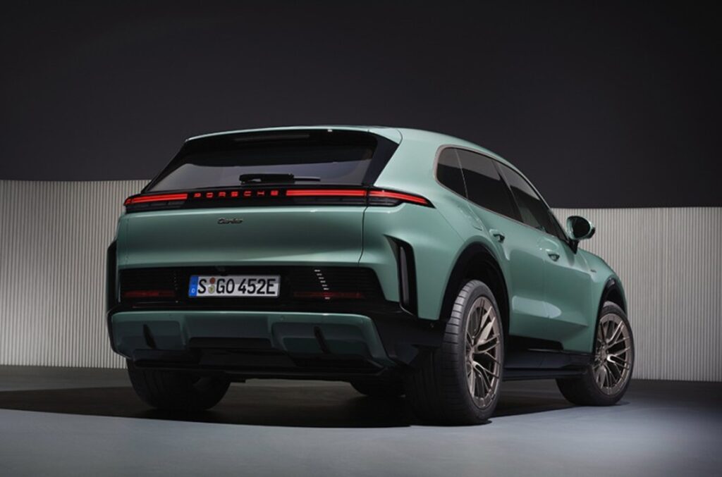 Cayenne Electric保留保時捷經典比例,同時以「Modern Evolution」語彙重新詮釋。車頭採用纖細LED矩陣頭燈(含四點日行燈)與低矮引擎蓋,風阻係數僅0.25。主動進氣導流板與氣簾優化氣流,車側無框車門與立體側裙,搭配飛越線Flyline與專屬輪拱飾條,勾勒低重心姿態。車尾貫穿式3D燈條內嵌自發光PORSCHE字樣,Turbo Electric獨享Turbonite渦輪黑色飾條(徽飾、窗框、21-22英寸輪圈)。主動空力套件(PAA)包含車頂擾流板與Turbo專屬後部aeroblades翼片,高速時增加下壓力並提升續航。越野套件(選配)提供更佳接近角。Cayenne Electric首度搭載Porsche Driver Experience全數位座艙,三塊OLED曲面螢幕(14.25英寸儀錶+14.9英寸中控+選配14.9英寸副駕螢幕)構成保時捷史上最大顯示面積。儀錶支援AR抬頭顯示(87英寸虛擬影像),中控整合Porsche Digital Interaction與App Centre,支援第三方串流與遊戲。全新情境模式(Mood Modes)一鍵切換座椅、燈光、空調與音效;全景天窗採用Variable Light Control液晶薄膜,可瞬間切換透明/霧化。電熱套件加熱扶手與門板,氛圍燈含充電動畫。排檔桿移至方向盤右後方,中央保留空調實體旋鈕與觸控音量。軸距加長至3023毫米(+130 mm),後排膝部空間大幅提升約12厘米,頭部空間約9厘米(175厘米成人)。後座支援電動前後滑移與椅背角度調整,行李廂781-1588升+前90升frunk,平整底板可容四組高爾夫球袋。拖曳能力3.5噸(需選配拖車勾),車內置物包括中控大型冷熱杯架與後座平板架。車重2650公斤,轉向半徑6.1米(選配後軸轉向降至5.7米)。Cayenne Electric採用前後雙馬達+113 kWh電池(雙面冷卻),800V架構支援390-400 kW快充(10-80%不到16分鐘)。入門版408 PS(Launch Control 442 PS),0-100 km/h 4.8秒;Turbo Electric正常857 PS,Launch Control瞬間1156 PS/1500 Nm,0-100 km/h 2.5秒、0-200 km/h 7.4秒,極速260 km/h。後軸馬達採用賽車級直接油冷,Push-to-Pass提供10秒176 PS額外動力。動能回收最高600 kW(Formula E等級),97%煞車純電完成。底盤標配PASM氣壓懸吊,Turbo版搭載Porsche Active Ride主動液壓系統,幾乎完全抵消側傾與俯仰。全系標配Matrix LED頭燈(8萬像素)、夜視系統與InnoDrive智慧巡航(含車道置中與轉向輔助)。360度環景與AR導航提升感知,碳陶煞車(PCCB)為Turbo選配。車身採用高強度鋼與鋁合金,預計Euro NCAP五星。