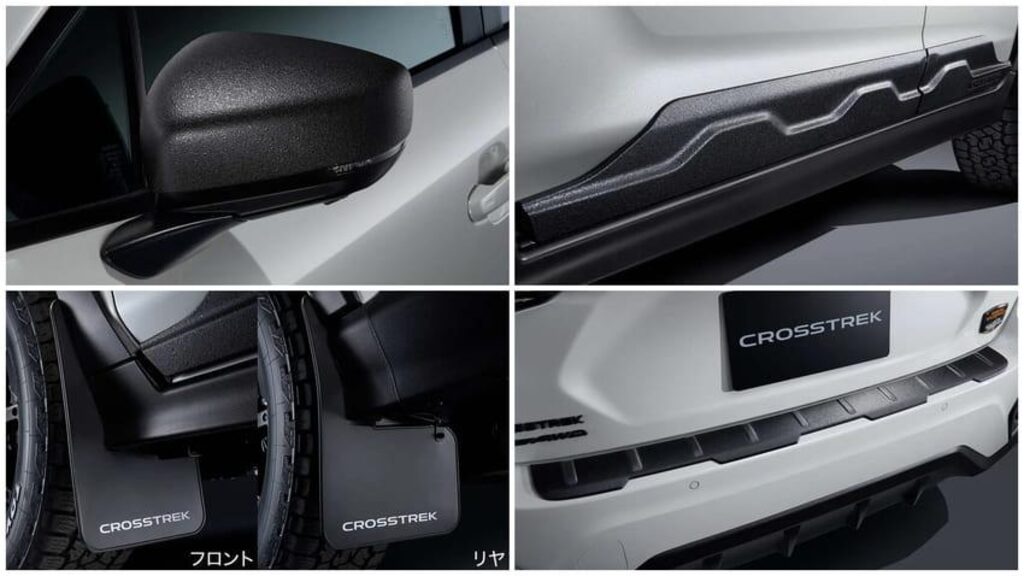 新登場的 Crosstrek Wilderness Edition 特仕版換裝消光黑水箱護罩及車尾 Wilderness 專屬徽章作為識別,引擎蓋上也設有防眩光黑色飾貼,並在引擎蓋前端及頭尾燈處增加碳纖維紋路裝飾來提升動感氣勢,而更特別的是車側後視鏡、車身側裙/護板及後行李廂踏板皆採用抗刮耐磨的 Deco-Boco Black 磨砂塗裝,為整體造型注入粗獷的戶外設計元素。Crosstrek Wilderness Edition 特仕版動力採用 2.0 升 e-Boxer 油電混合系統,引擎本體可提供 145 匹、19.2 公斤米輸出,電動馬達則提供 13.6 匹、6.6 公斤米的動力支援,搭配 CVT 無段式變速箱及 4WD 四輪驅動系統,同時腳下也換上 17 吋多輻式消光黑輪圈,並帶有 Wilderness 招牌的黃色裝飾,搭配 Toyo Open Country A/T III 全地形輪胎,進一步強化越野表現。