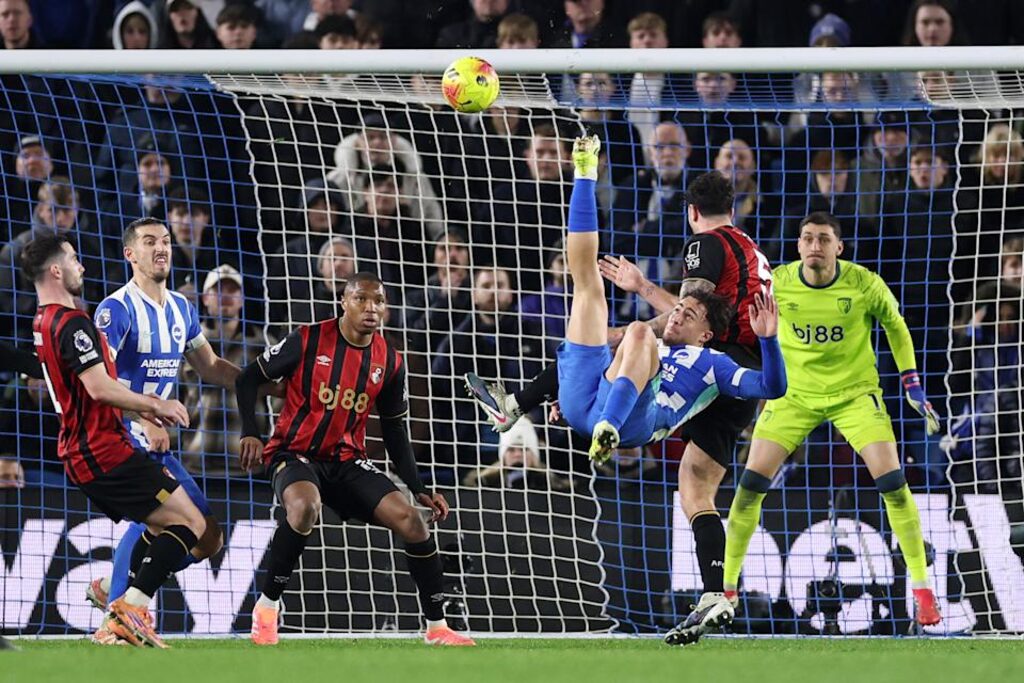 白禮頓去仗在英格蘭足總盃踢曼聯出局,今仗變陣,其中日本球星三笘薰復任正選,那是其第100場英超比賽。般茅開始在聯賽缺少施曼尤的日子,由艾迪利掛帥。白禮頓早段控制大局,8分鐘,古達在一次短角球攻勢禁區外施射被擋出。戰至32分鐘,艾迪利入楔禁區被費保夏碰跌,球證經過VAR審視後判罰12碼,達芬尼亞主射入網。其後雙方都有入球機會,白禮頓戰至下半場補時1分鐘,憑哥斯度拿斯接應頭球二傳,心口一控然後施展倒掛射入,為白禮頓搶得1分。白禮頓賽後22戰得30分排12,般茅少3分排15。分享 / Share :