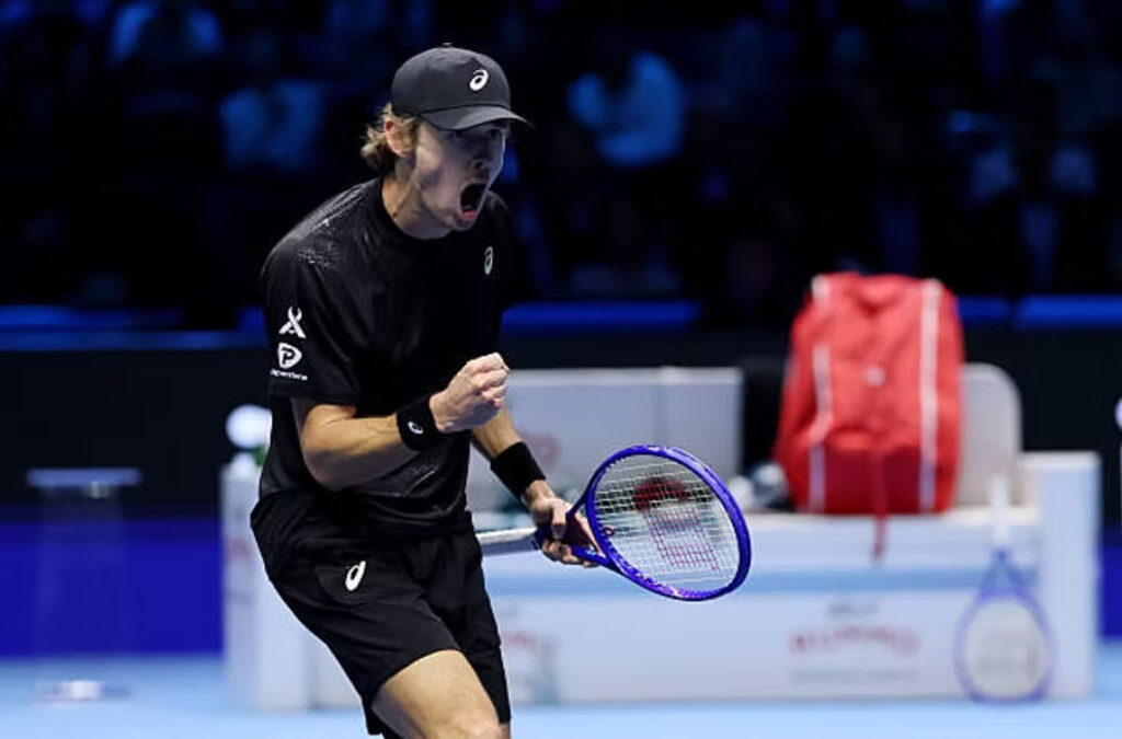 ATP年終賽分組賽,由迪文拿奧(Alex De Minaur) 對戰費歷斯(Taylor Fritz) 。第1盤迪文拿奧率先破發,一度領先3:1,不過費歷斯在第6局破發成功,追成3:3,其後雙方打成6:6平手,需打tie-break分勝負,結果迪文拿奧憑著首盤「一發」得分率達81%,贏細分7:3,先以7:6(7:3)勝出。次盤發展與首盤相若,迪文拿奧第2盤的「一發」得分率升至87%,令他率先在第2局破發,一度領先3:0。中段迪文拿奧成功保持破發優勢,領先至5:2,結果再贏1盤6:3,力戰1小時34分鐘後,以直落兩盤擊敗費歷斯。迪文拿奧賽前必須在今戰直落兩盤勝出,才能有出線希望,現在只要艾卡拿斯稍後擊敗姆迪錫,就可取得4強席位。分享 / Share :