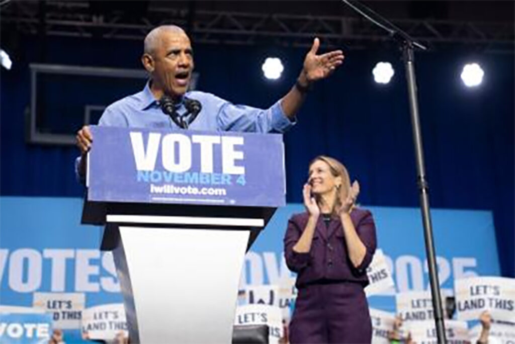 【本報綜合訊】美國周二舉行紐約市長及新澤西州州長等多場選舉,被視為明年中期選舉的風向標。前總統奧巴馬為民主黨候選人站台時,批評特朗普的經濟政策無法無天,呼籲選民透過選票抵制。