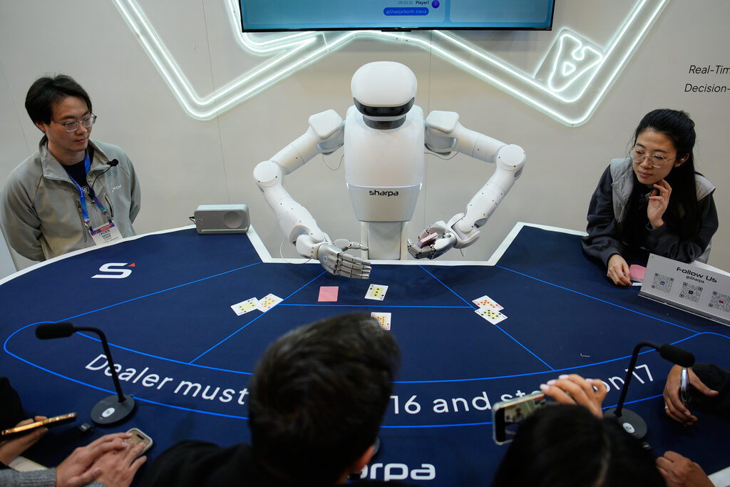 美國消費性電子展(CES)6日登場,輝達(NVIDIA)執行長黃仁勳、超微(AMD)執行長蘇姿丰主題演講都秀出以自家平台打造的人形機器人,凸顯人形機器人已成為下一波科技創新的重要浪潮。相較於往年,今年展場的人形機器人更有看頭。美國公司波士頓動力(Boston Dynamics)為機器人技術革命先驅,早在20年前便奠定產業基礎。公司於2020年12月被韓國現代汽車集團(Hyundai)收購。波士頓動力在今年CES上發表全新版人形機器人Atlas。新一代Atlas行動力更佳,可舉起最多50公斤的重量,操作溫度範圍介於攝氏零下20至40度。現代汽車計畫將這款人形機器人自2028年起導入自家汽車工廠。韓國LG電子在拉斯維加斯展示剛發表的智慧家庭機器人CLOiD。這款機器人靠輪子在地面前進,且能連結各種智慧家電,包括冰箱、洗衣機,協助完成家務。CLOiD能撿起鑰匙、從烤箱中取出餐盤,甚至摺疊衣物,展現實際居家應用的能力。儘管LG在智慧型手機市場不敵競爭對手三星(Samsung),但近年在飯店與服務型機器人領域持續累積實力,CLOiD被視為技術整合的最新成果。韓國新創公司WIRobotics今年展示機器人ALLEX的動作能力水準。ALLEX具備動作辨識與精細運動控制能力,可在使用者移動手部時即時回應,完成握手、擊掌等互動動作。現場顯示機器人反應未見明顯延遲。這款機器人採用輝達的Jetson運算平台,支撐即時反應需求。ALLEX的手部設計能偵測微小壓力,靈敏度不亞於人手,同時握力表現可達30公斤。除上述在展場受到高度關注的機器人外,超微(AMD)執行長蘇姿丰今年在主題演講上與意大利公司Generative Bionics的人形機器人GENE.01同台亮相,也讓這款概念性人形機器人掀起話題。分享 / Share :